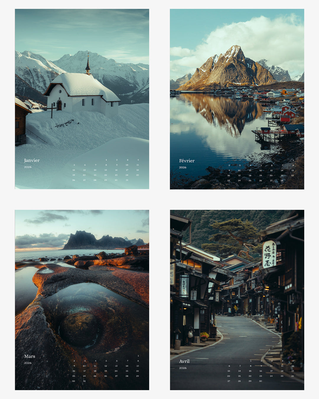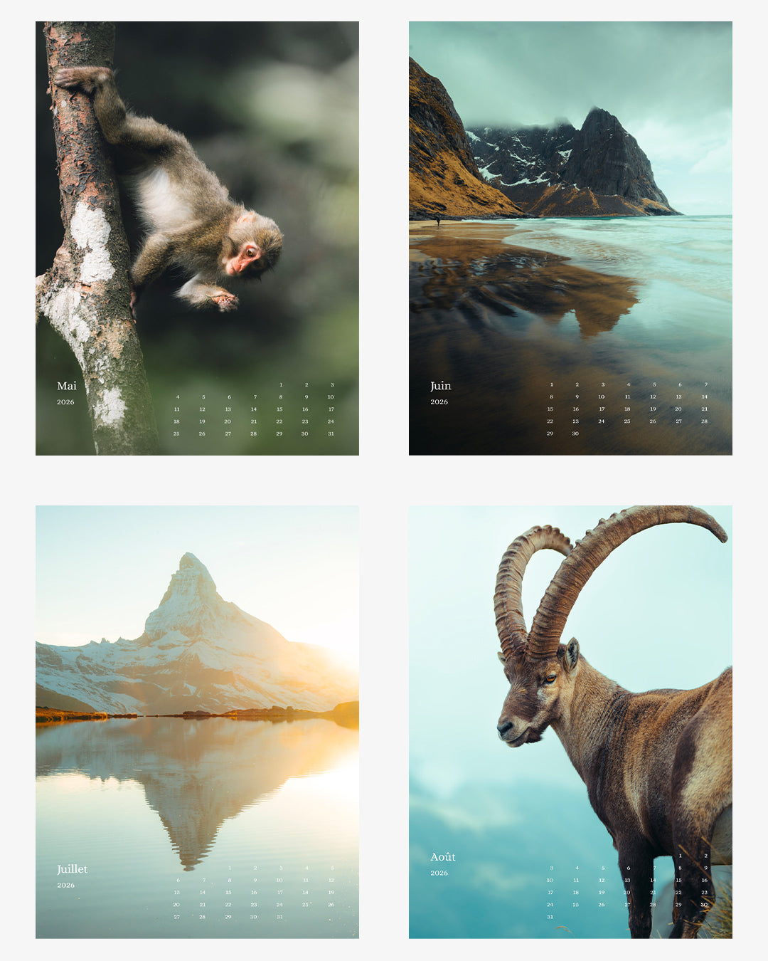 Each year, I select my favorite photos and memories captured during trips or little escapes here in Switzerland and beyond. This 2026 calendar brings together the moments that truly marked me this year, from amazing landscapes to simpler, yet equally meaningful moments of my adventures. I hope it takes you on a journey month after month, bringing a bit of the world’s beauty into your home.
